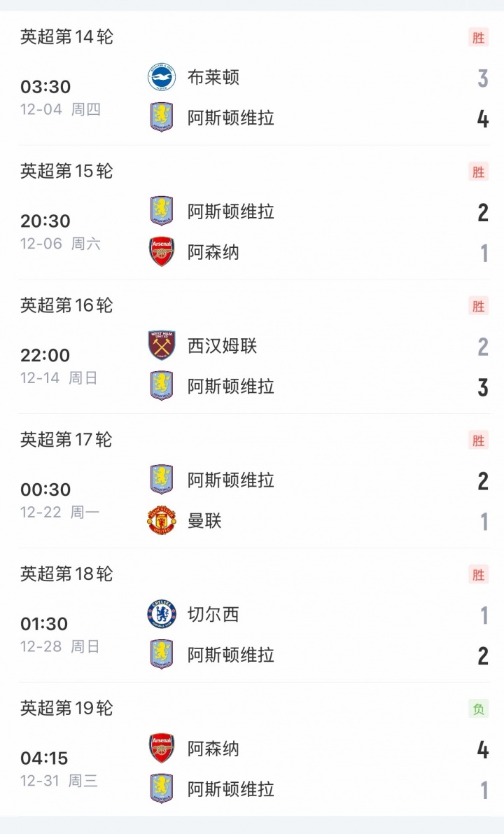 维拉12月战绩